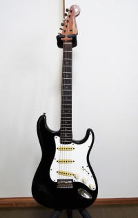 FENDER STRATOCASTER 1963年製 ハカランダ・ラウンド・ボードの'63年製ストラトキャスター。 それもハードテイルという珍しいモデル。 ビンテージギターですがかなりハードに使用していますので、 ボリュームポットやブリッジを交換済み、フロントピックアップも1976年製に交換されています。 ネックコンディションがイマイチで非常に弾きづらいギターですが、ピッキング強弱などの反応が素晴らしく”本物"だけが持つサウンドを紡ぎ出すギターです。 |